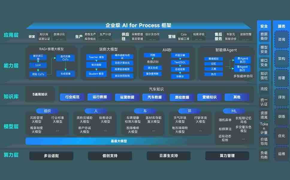 端到端的一站式AI工作空间深度融合了从企业战略规划到日常经营的全流程业务板块,,,,定向解决车企内部领域多、、、部门多、、、、链条长、、、、场景碎片化等难题,,,支持车企快速构建以AI为核心的生产力写作体系,,实现任务执行与AI能力的无缝集成与交互
